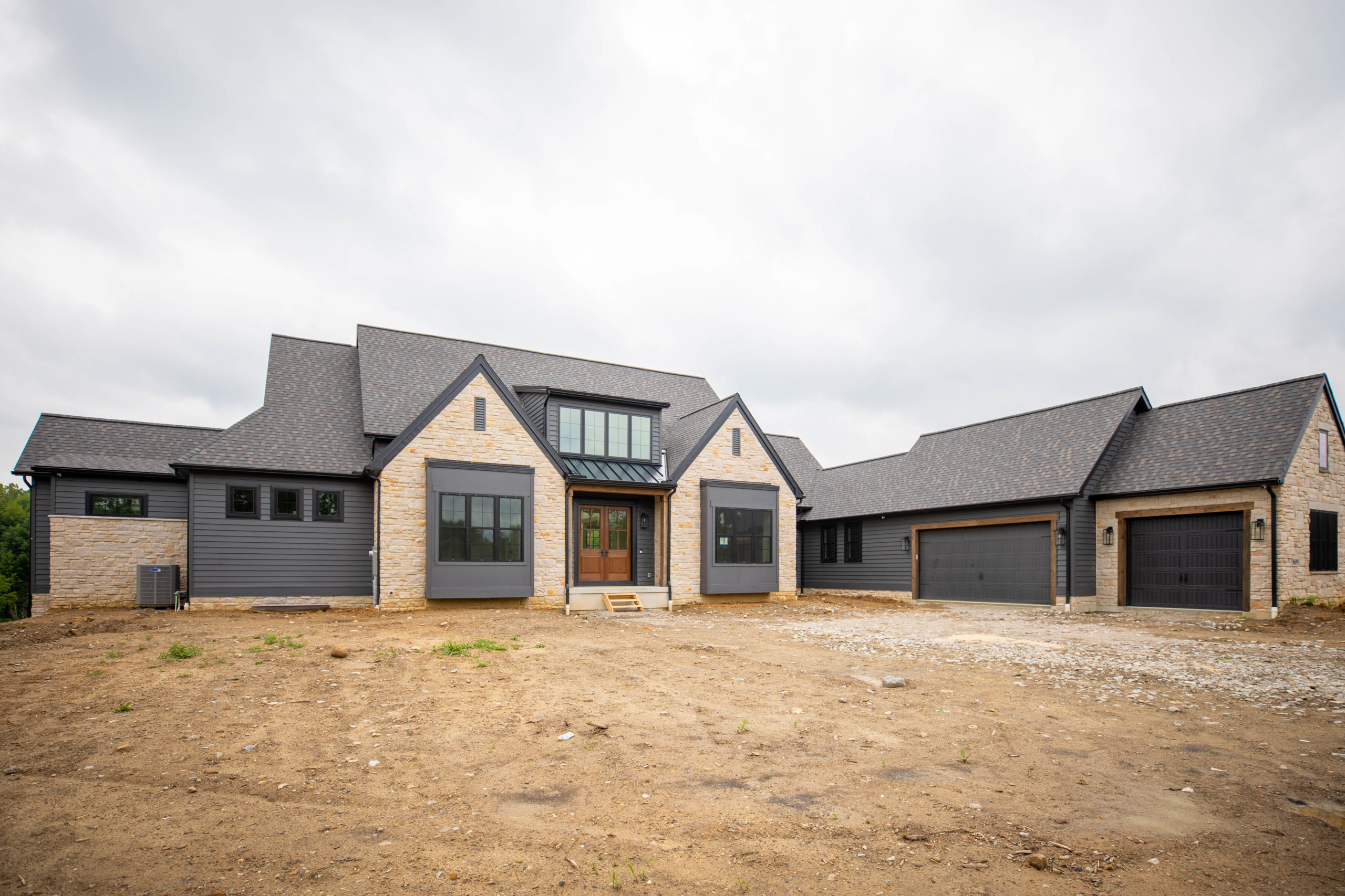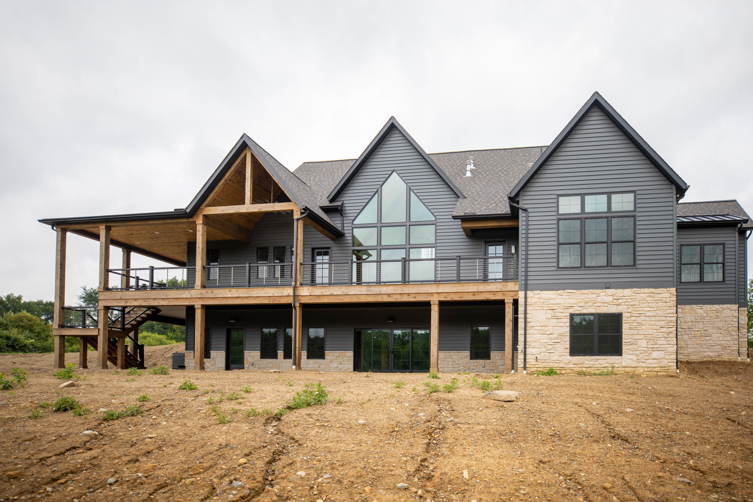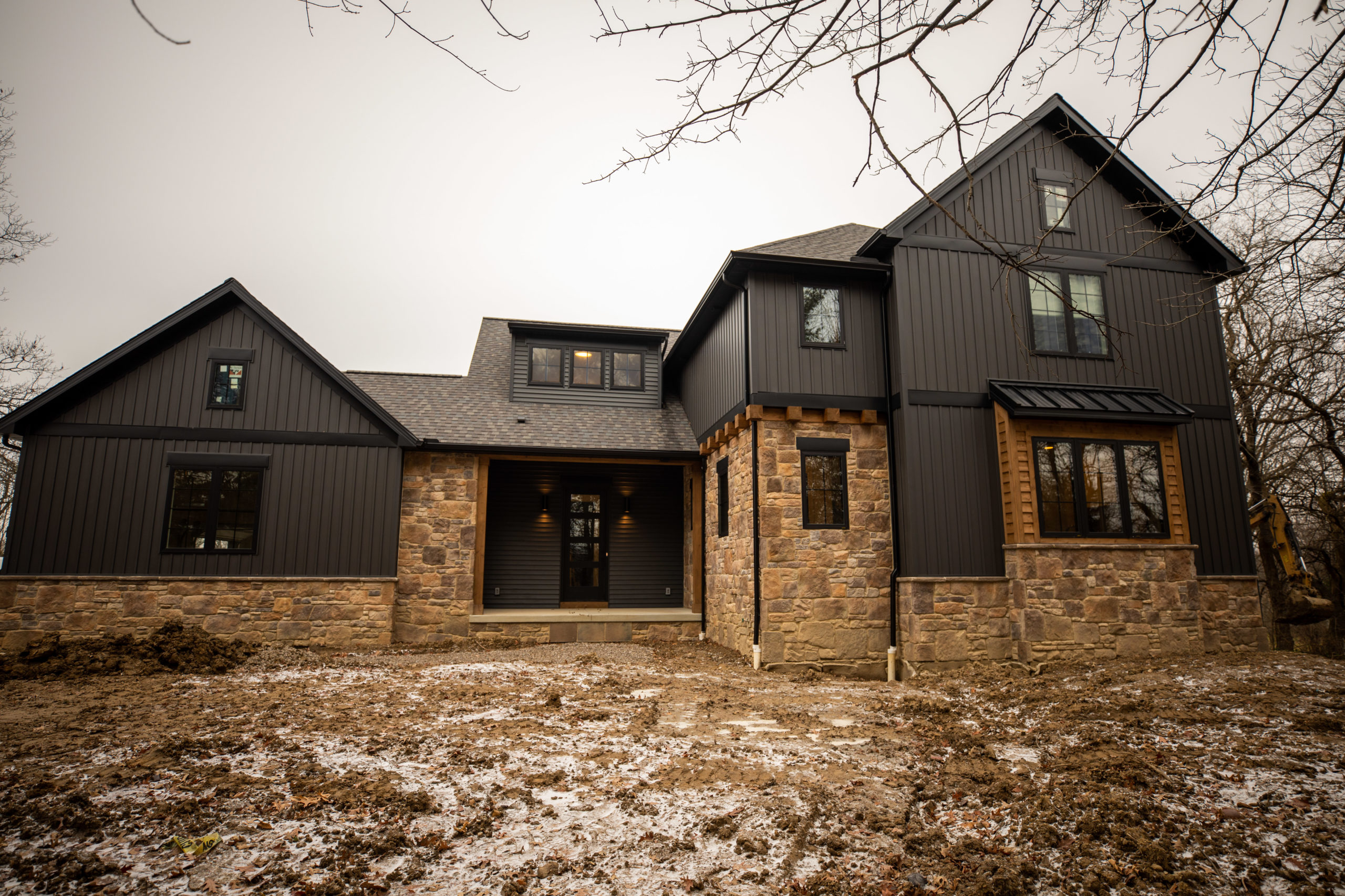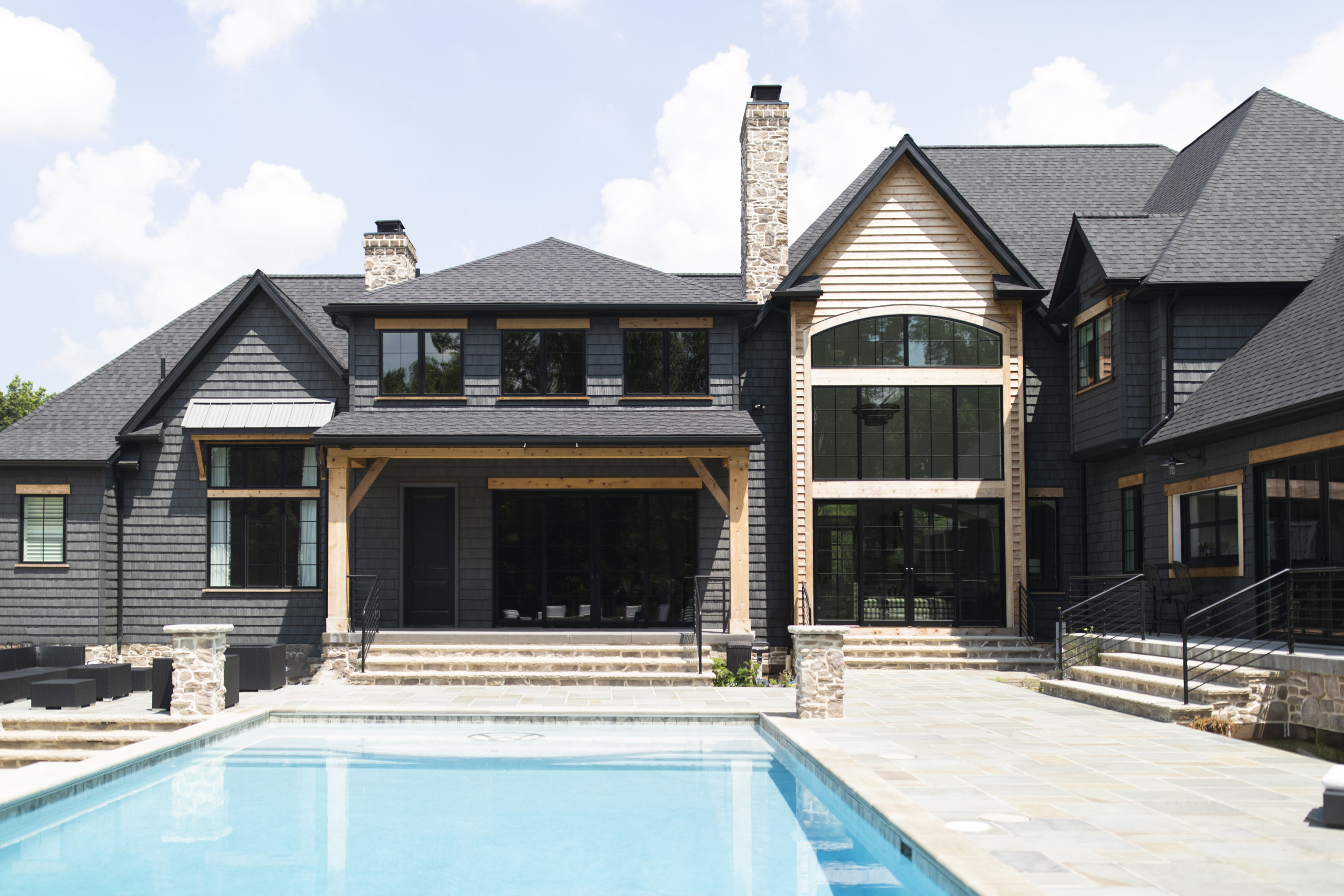 Dark exterior elements like black windows and Architectural Accents have been influencing design for several years, however the desire to have the an entire black exterior of a home is a trend we love. The boldness of Dark Color gives a striking contrast and modern aesthetic to simple forms & traditional architectural styles. Mixing in stained Wood Timbers for porch posts and window headers adds the perfect touch of warmth.