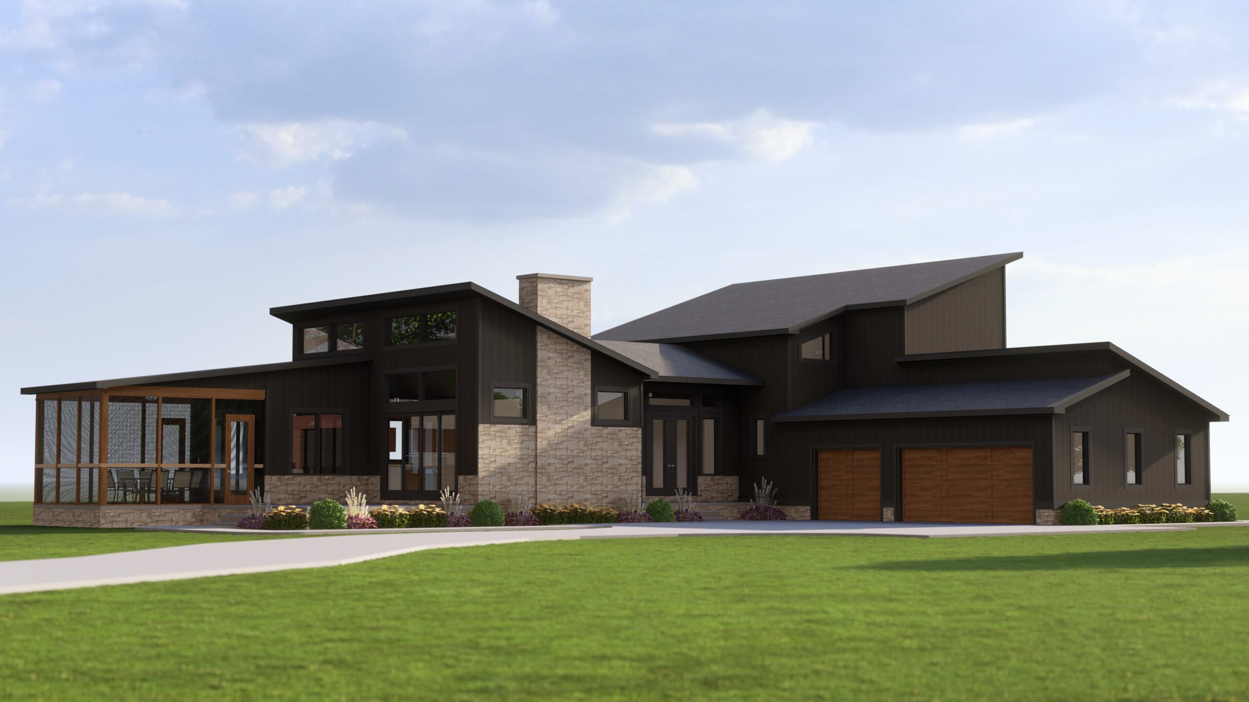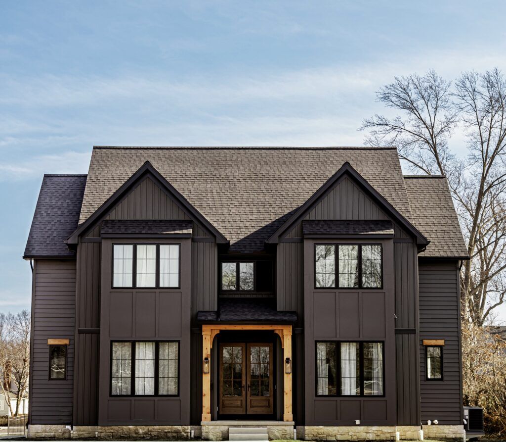 This stunning spotlight home was designed for a growing family in the highly sought-after city of Bay Village on the west side of Cleveland. Tucked into an existing neighborhood it was important that the architectural style of the home blended with the existing streetscape. The all-black exterior gives it a bold presence that is softened by the warmth of the natural Cedar wood accents.