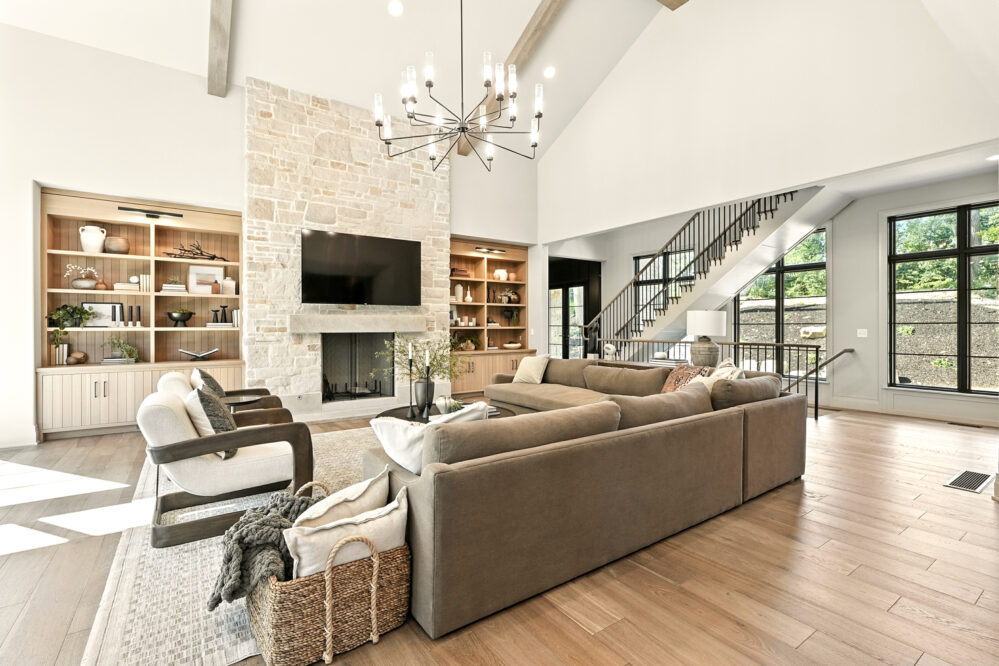 The Greystone plan is featured as our 2025 Pepper Pike Model Home and is Now Open for Tours! This house is designed to be the ultimate family home for the Modern Family of 2025. The open kitchen is a standout, centered around a 10-foot island and backed by a private walk-in scullery pantry that keeps everything tucked away. Just off the kitchen, the covered porch features an outdoor fireplace and looks out over beautiful wooded views (perfect for quiet mornings or relaxed evenings with friends).