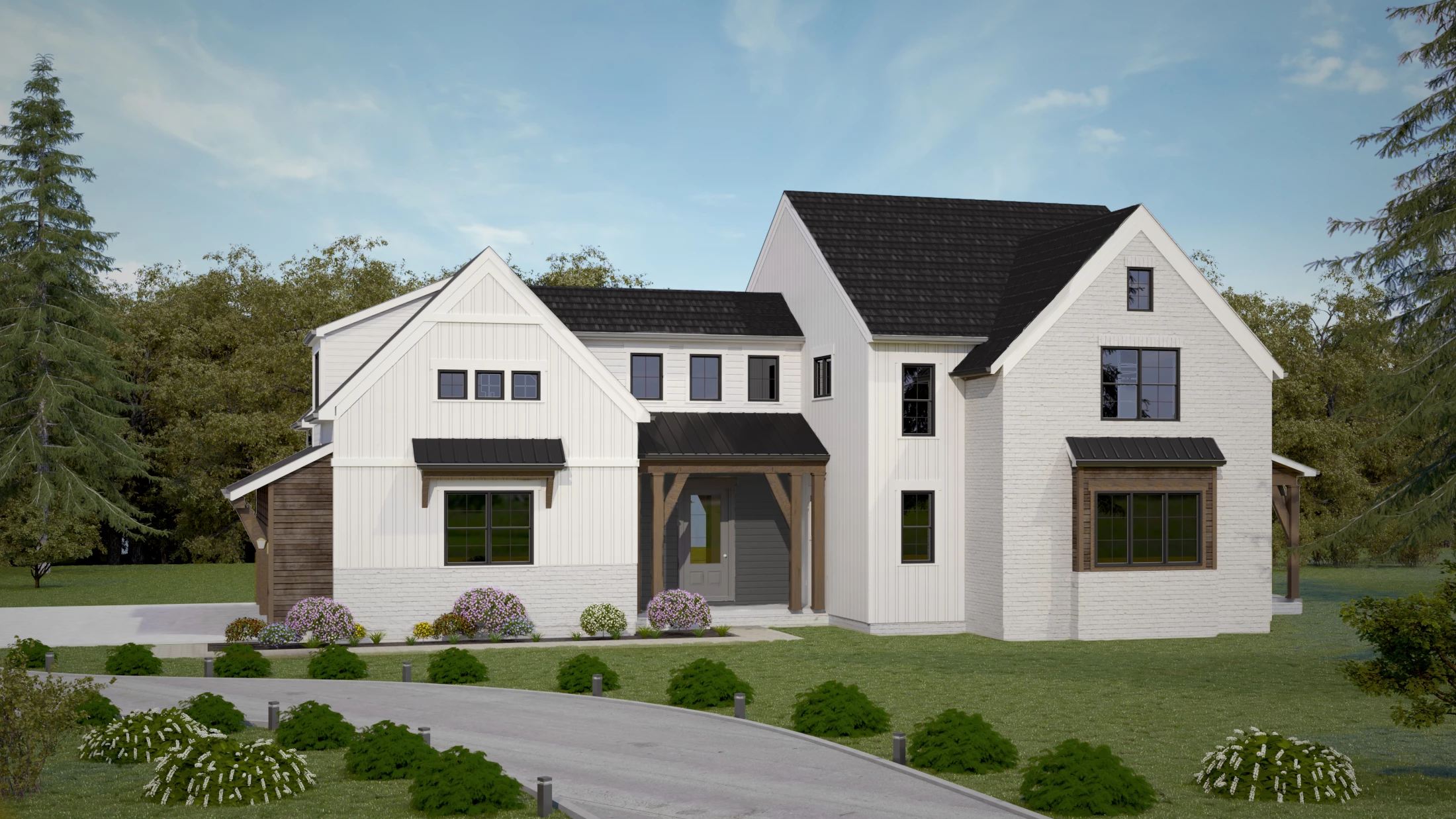 The Millbrook is a nod to the past rooted in classical design but updated for the way we live today. Our view of Modern is no longer cold and futuristic design. The new modern exudes warmth and thought. We love the open modern layout of this plan combined with the away space tucked in off the great room.