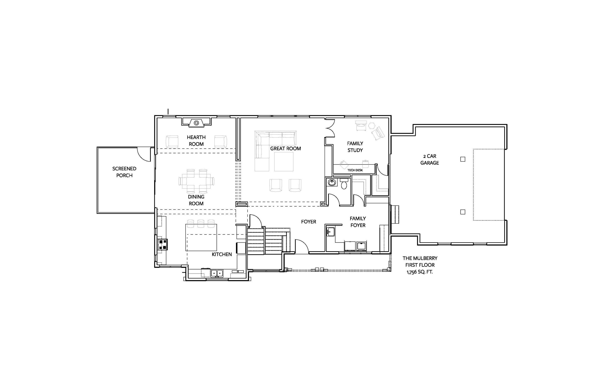 The Mulberry is a plan made for comfortable family living. The kitchen is surrounded by natural light on 3 sides and has a dramatic 2 story window that is open to the loft above.