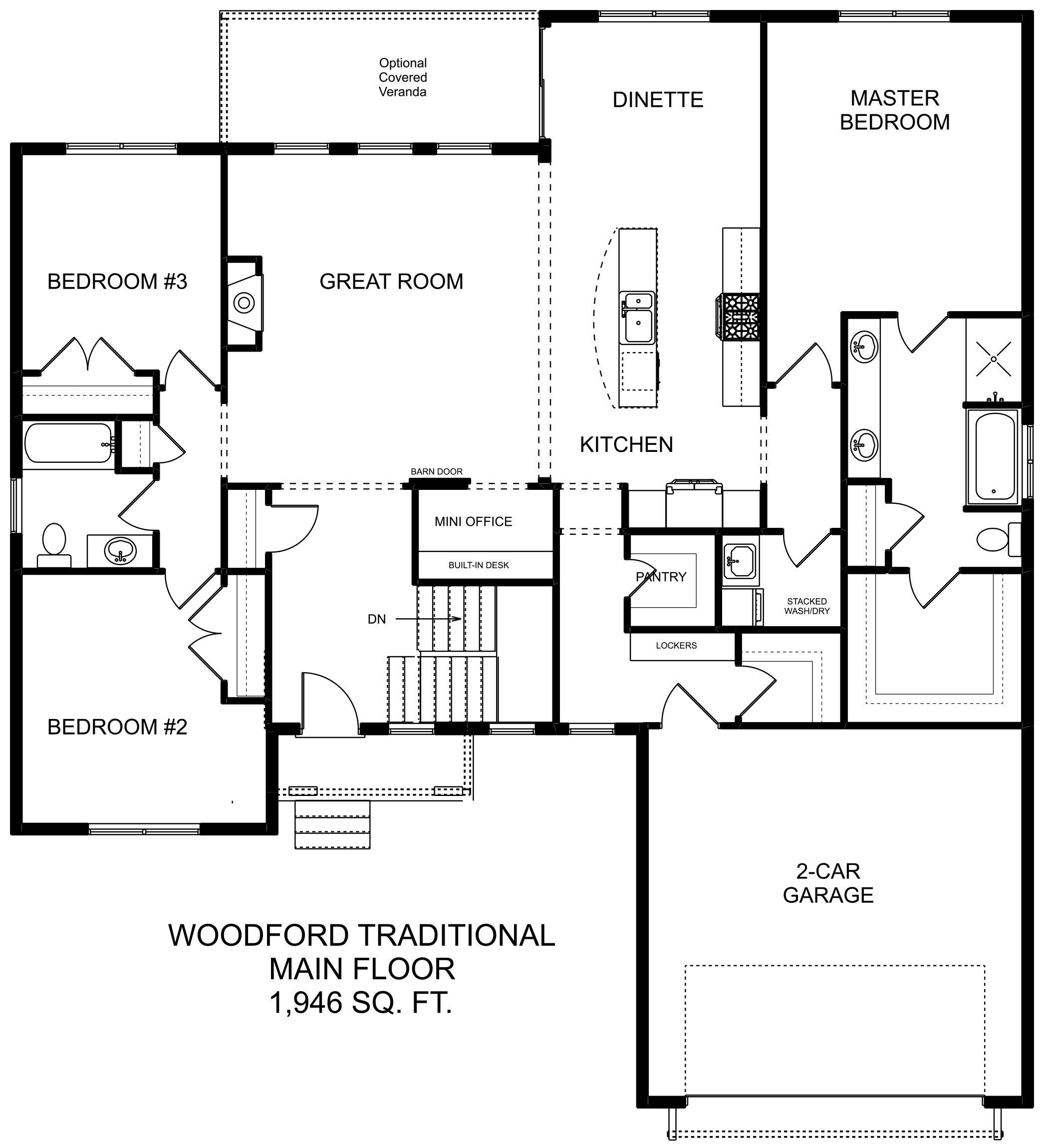 The Woodford Ranch packs all the features you could want into an efficient 1,946 square feet. Optional additional features include a side load garage in either a 3 or 4 car setup, screened outdoor living space, and finished lower level.